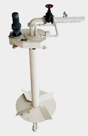 鐘式沉砂池由電動(dòng)機(jī)、減速機(jī)、葉輪主軸、轉(zhuǎn)盤葉片、空氣提升和空氣沖洗系統(tǒng)、吸砂管及鋼制平臺、池體(一般為混凝土池,用戶可選配鋼制池體),轉(zhuǎn)盤葉片的直徑和高度根據(jù)用戶的池體訂制。