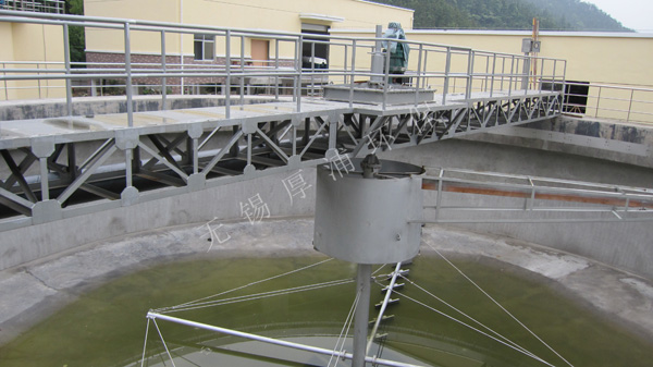 概 述: 該系列刮泥機(jī)結(jié)構(gòu)簡(jiǎn)單,整臺(tái)刮泥機(jī)的載荷都作用在工作橋架的中心,由中心驅(qū)動(dòng)機(jī)構(gòu)帶動(dòng)刮集裝置旋轉(zhuǎn),頂向刮板將沉淀池底的污泥刮集到中心集泥槽中,靠靜水壓力從污泥槽中排出。該機(jī)用于池徑較小的輻流式沉淀池。